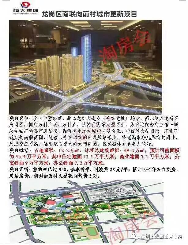 龙岗城市更新《恒大向前村》旧改指标房